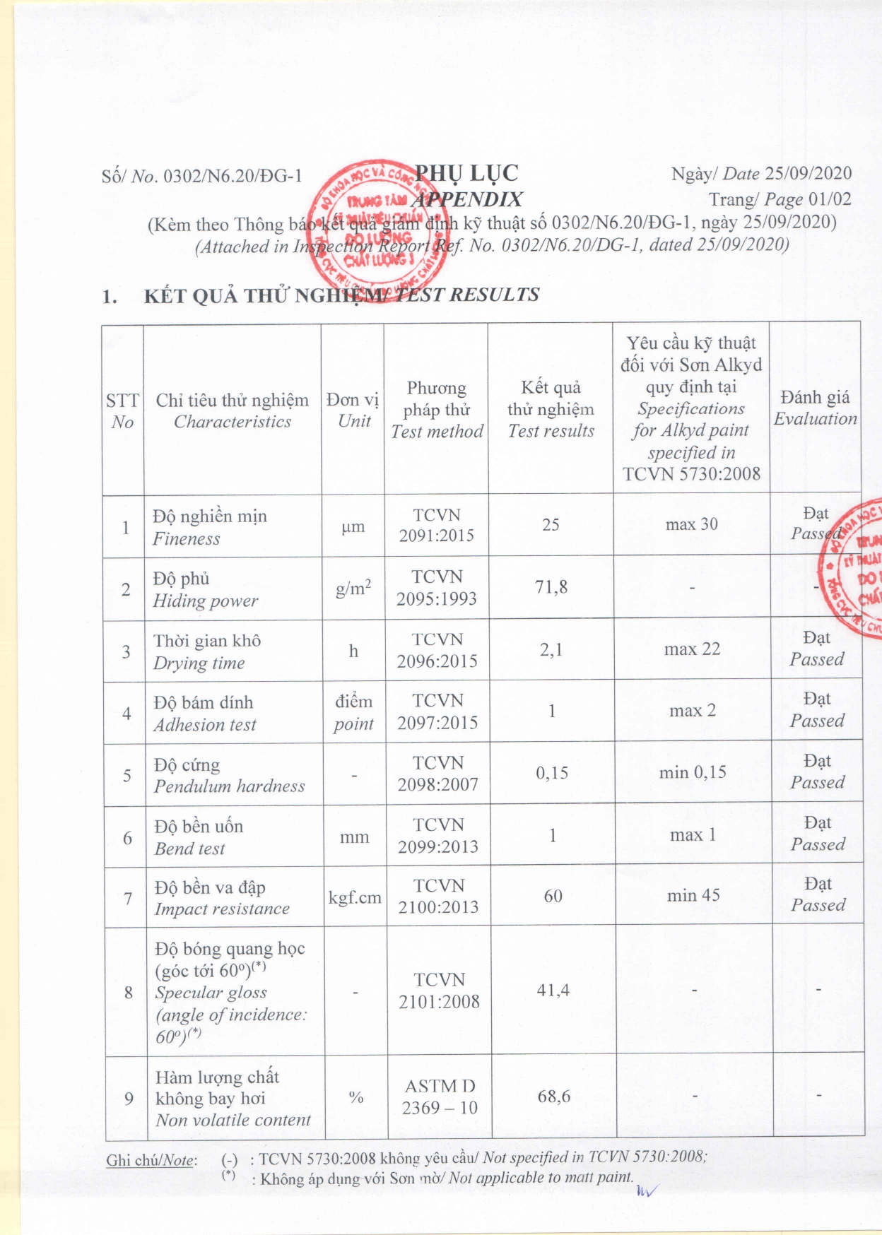 Giấy kiểm định sơn lót alkyd lazenta, giay kiem dinh son lot alkyd lazenta