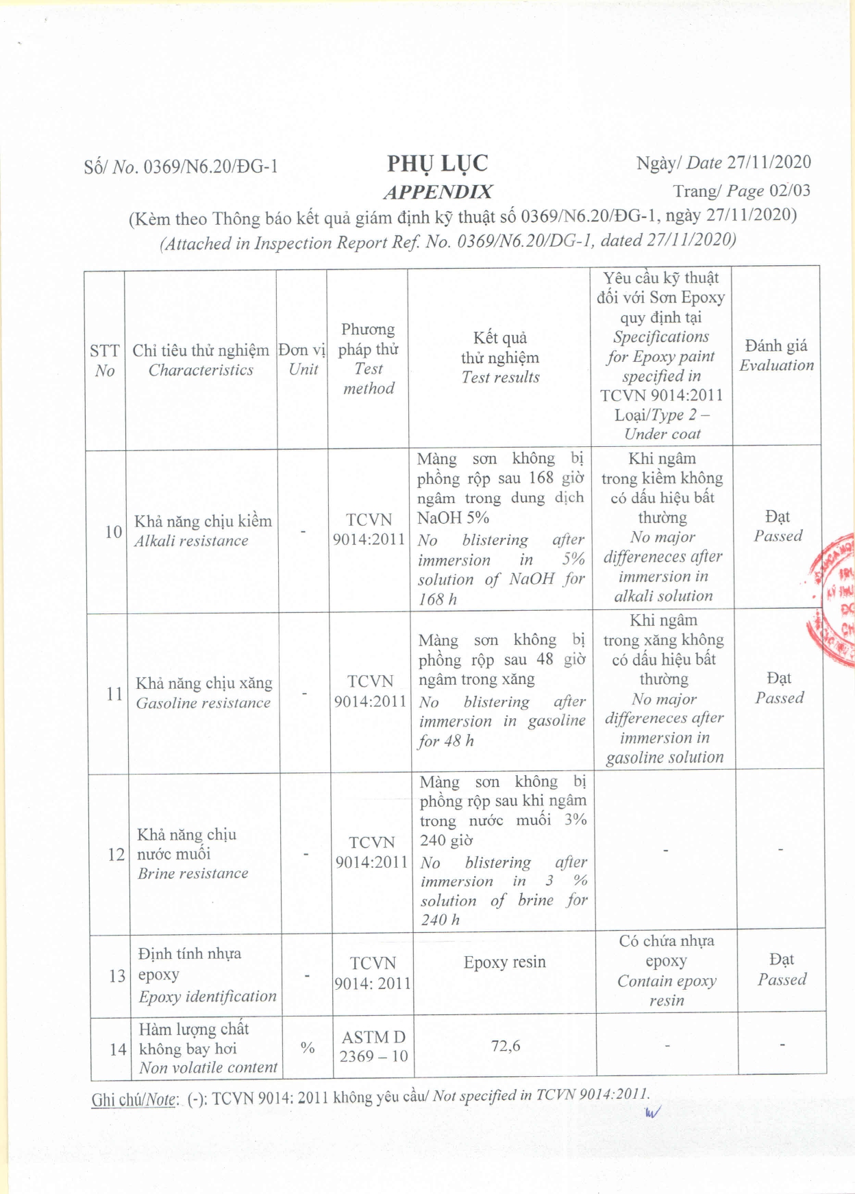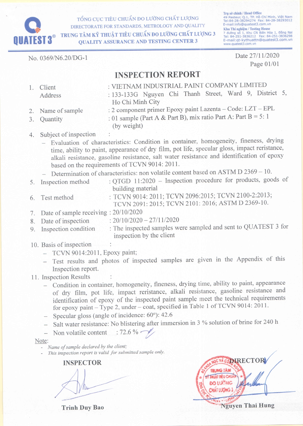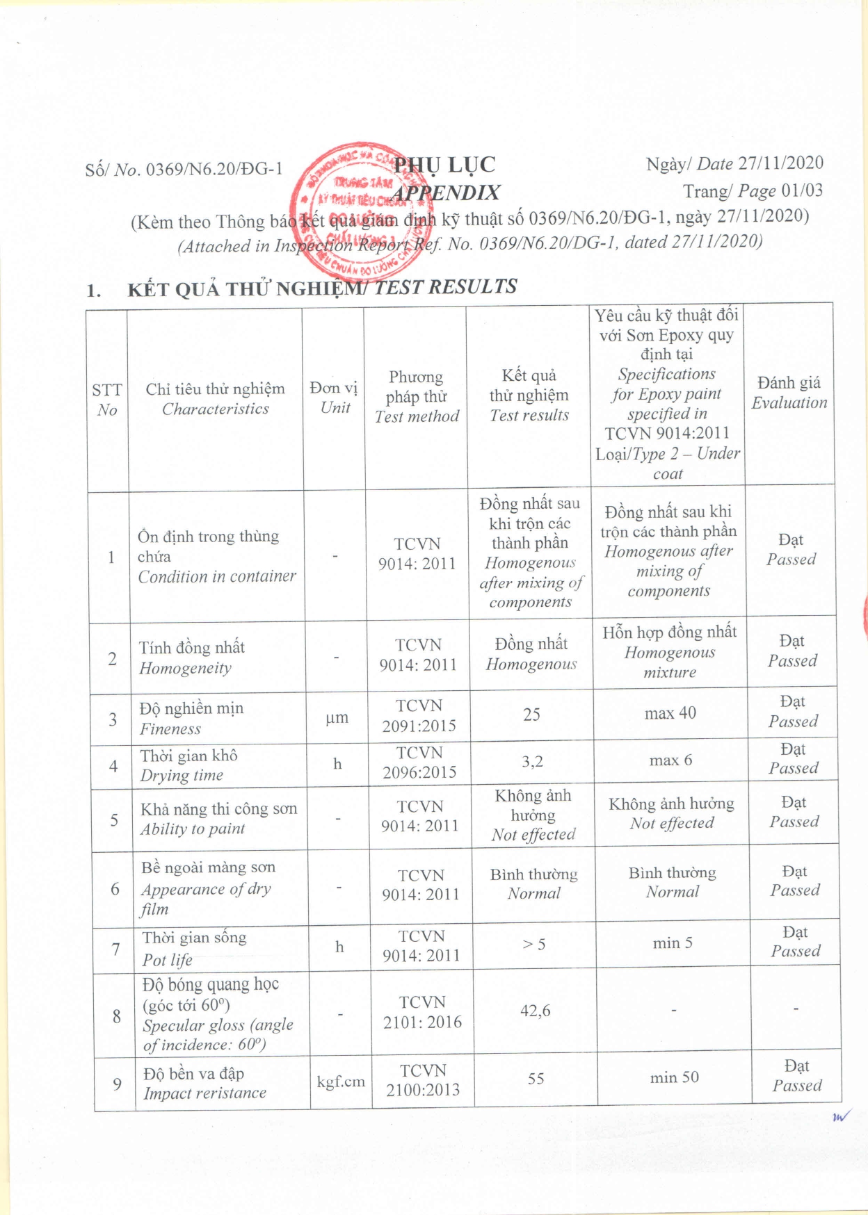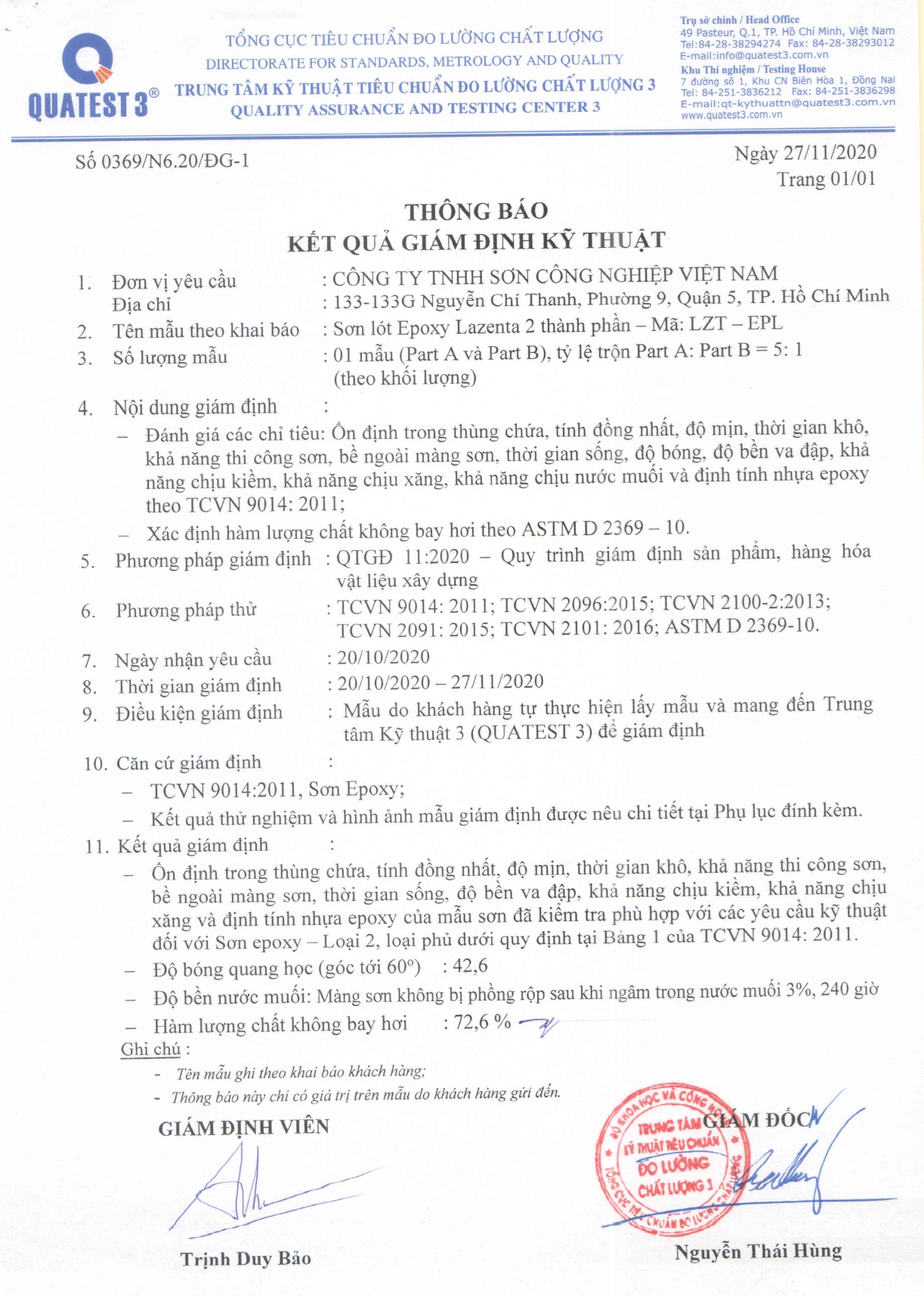Giấy kiểm định sơn lót epoxy lazenta, giay kiem dinh son lot epoxy lazenta