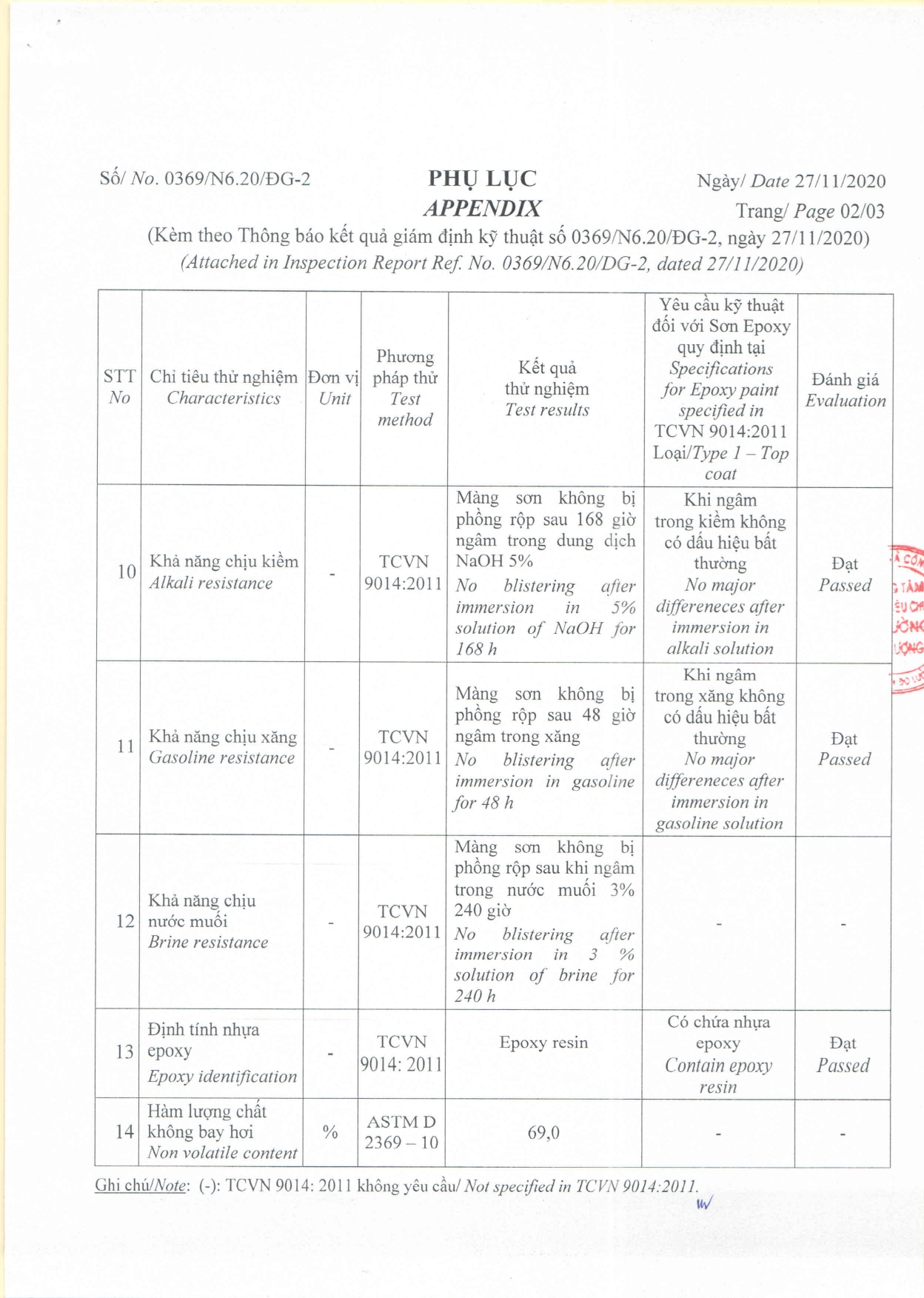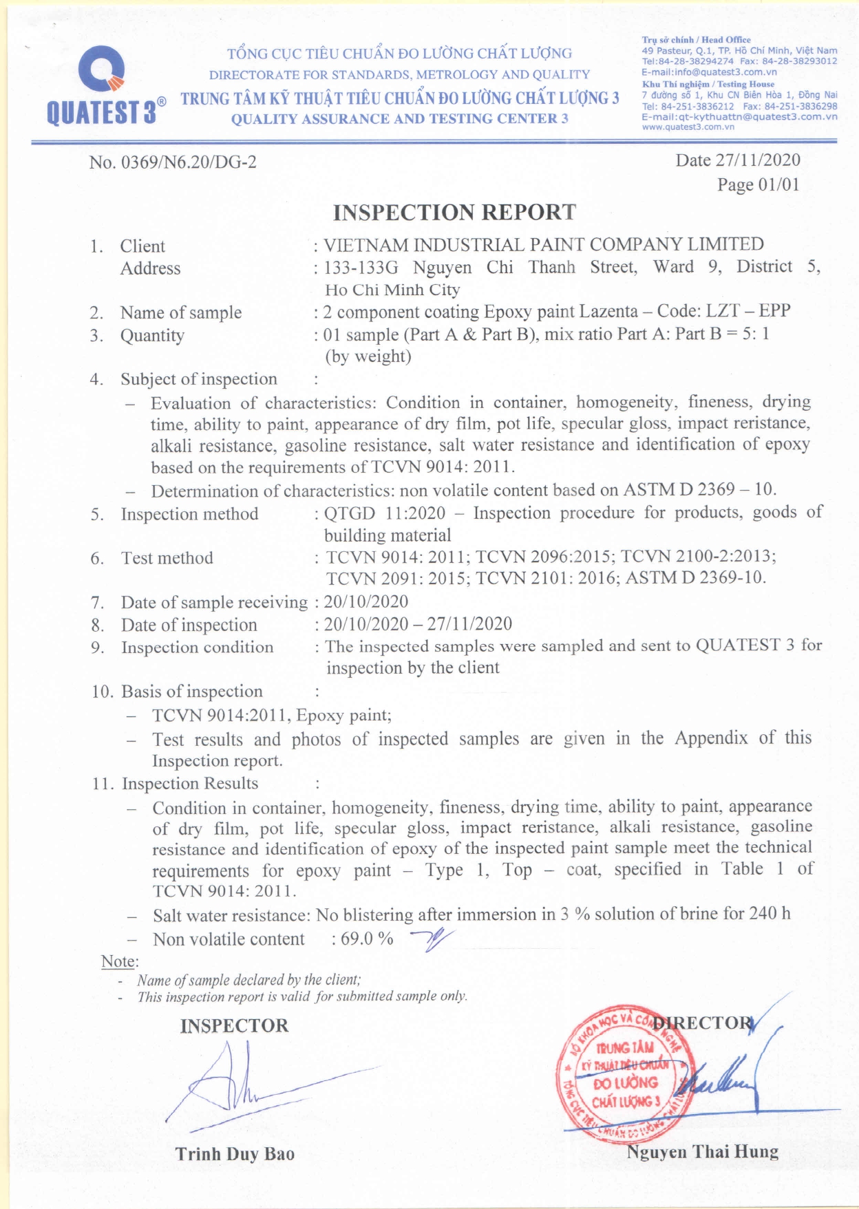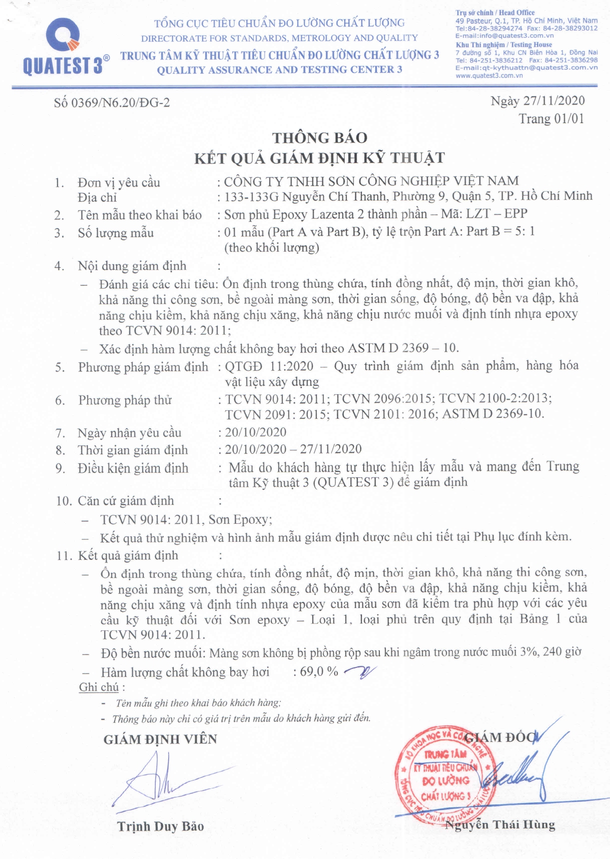 Giấy kiểm định sơn phủ Epoxy lazenta, giay kiem dinh son phu epoxy lazenta