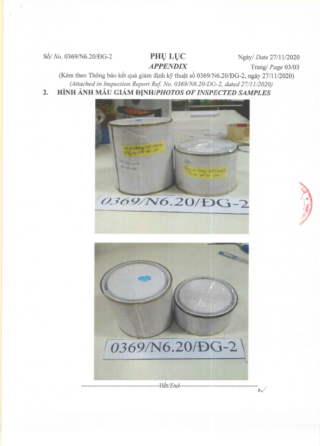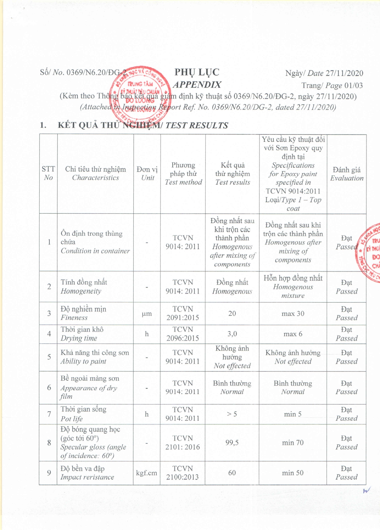 Giấy kiểm định sơn phủ Epoxy lazenta